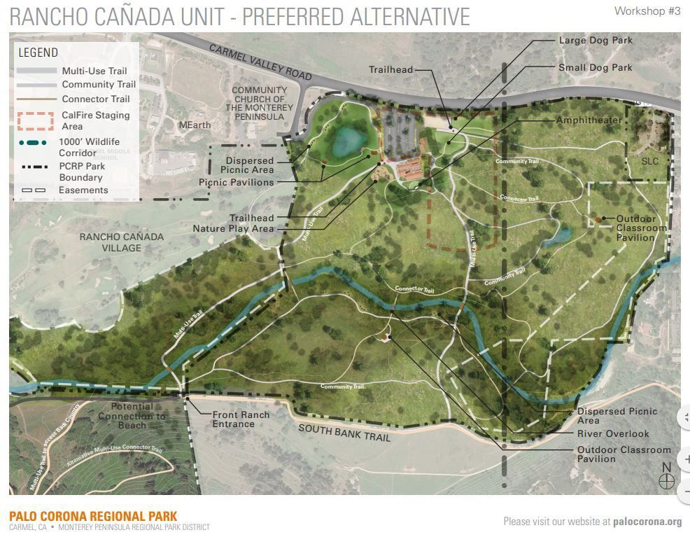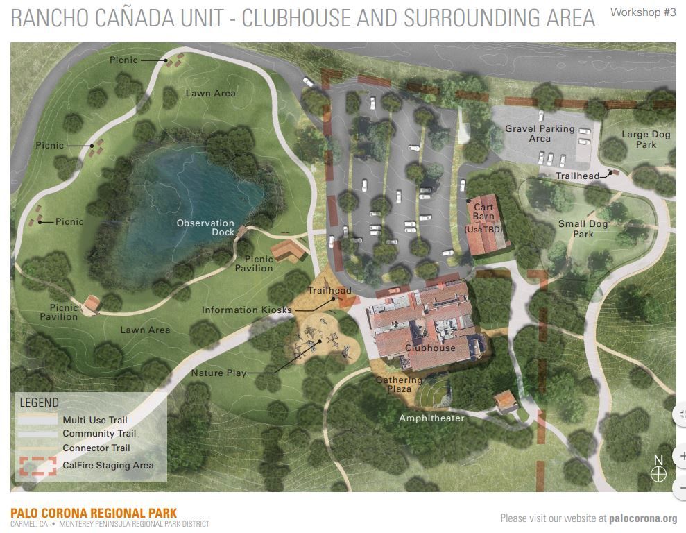 The Monterey Peninsula Regional Park District has moved its headquarters to the former golf course and oversees its restoration. A network of trails provides access to the river and connects to the parklands accross the river. The district and the local Santa Lucia Conservancy plan an outdoor classroom and environmental education programs for visitors and school groups.